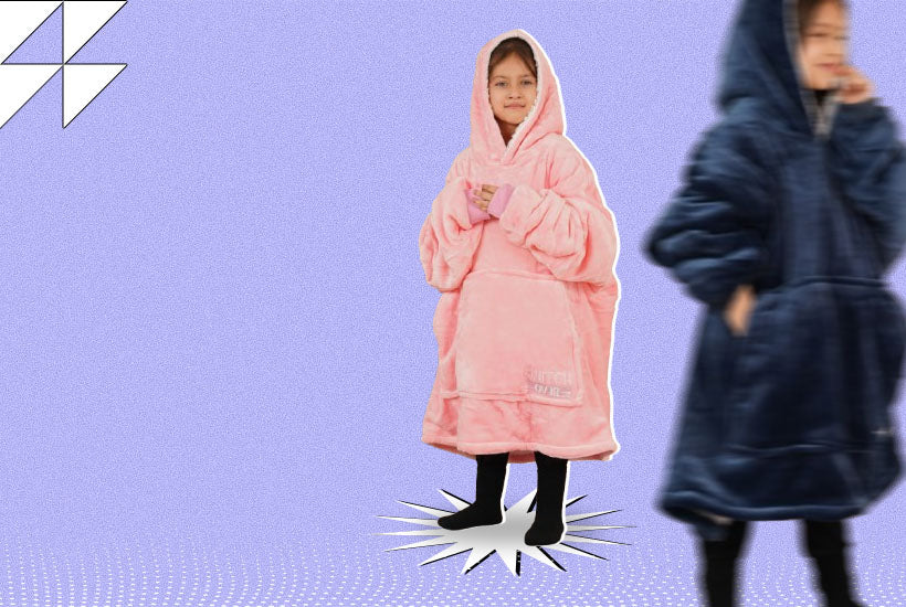 Black Wearable Sherpa Blanket Hoodies for Children | Thick & Warm, Oversized Hoodie